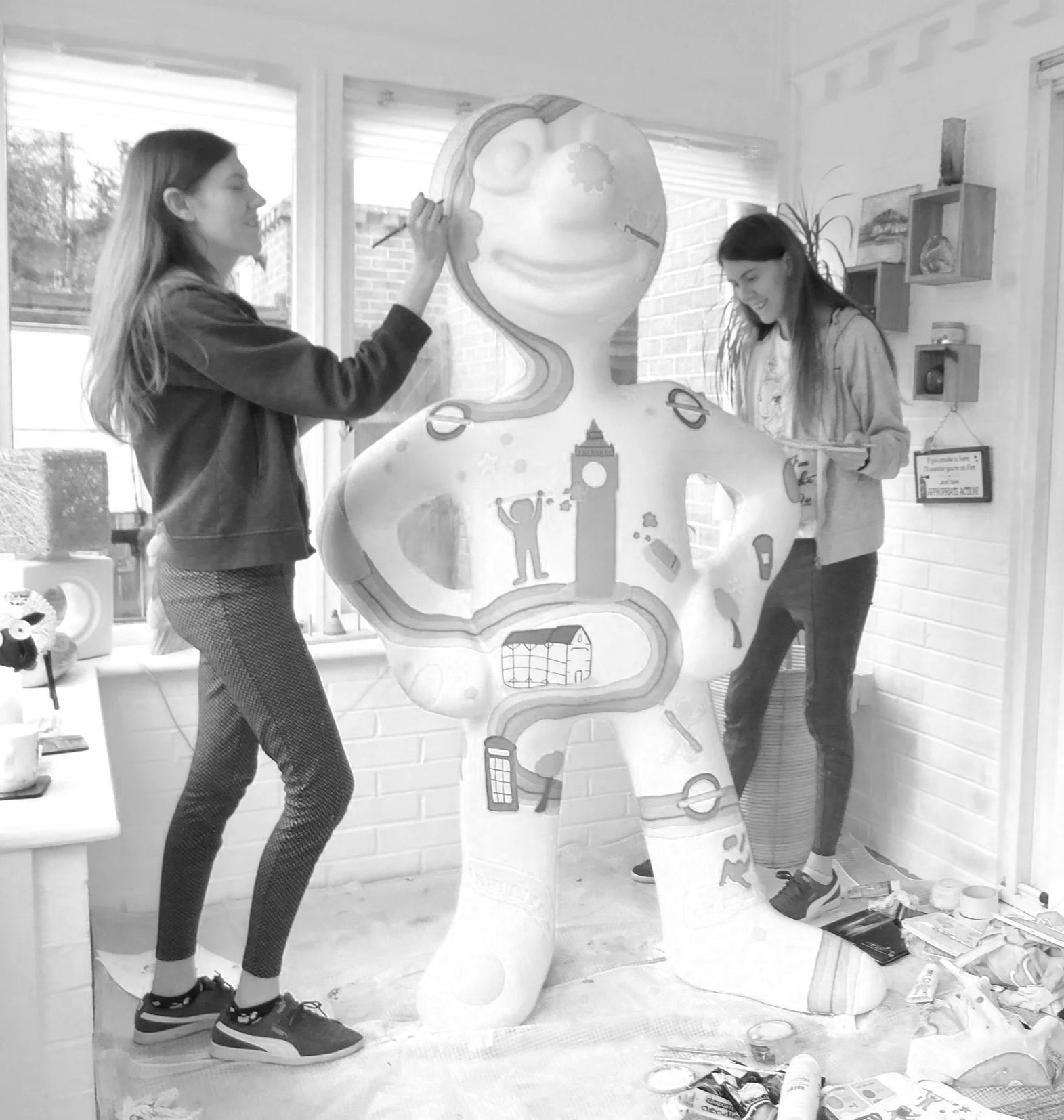 Rachael and Phillippa painting Morph for Morphs Epic Adventure London.